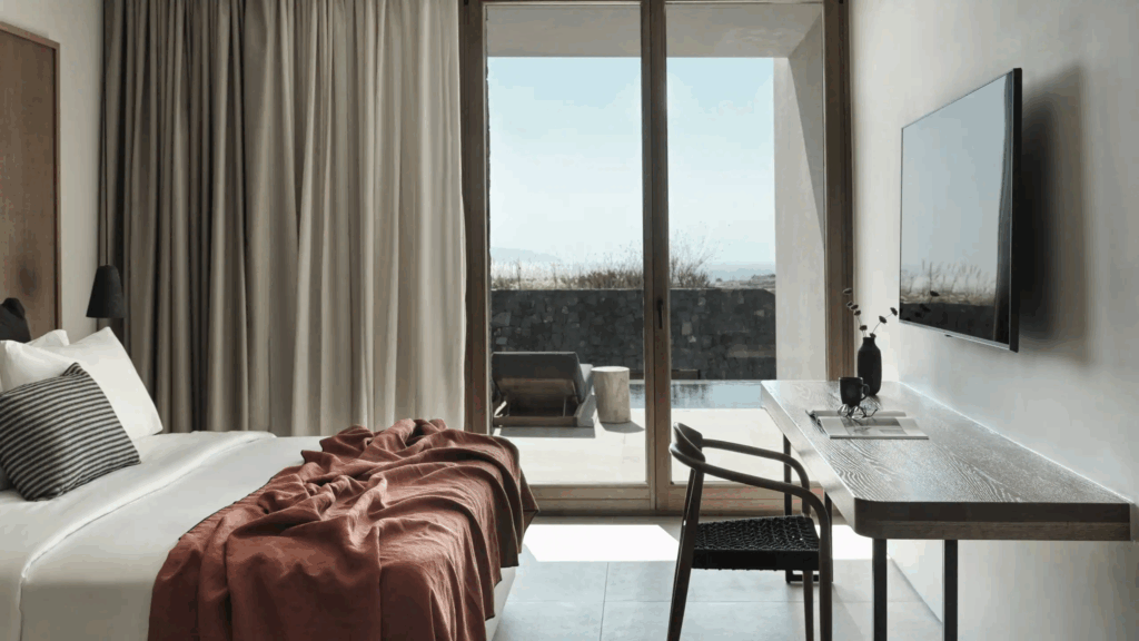 An exclusive escape in Santorini, where vineyard views meet the Aegean horizon.