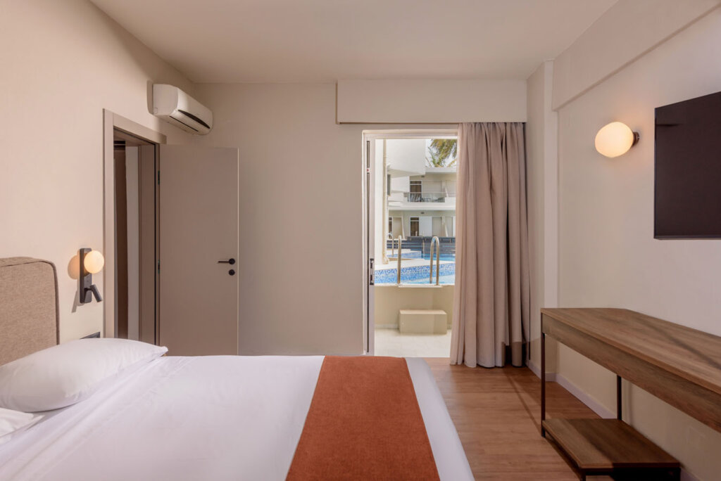 Located just 200 meters from the beach and 6 km from Rethymno’s center, our 190 modern rooms range from cozy doubles to spacious family suites with private pools. Savor Greek, Mediterranean and International dishes at our main restaurant or unwind at our poolside bars. Ydoria Resort is ideal for both romantic escapes and family-friendly getaways, featuring a kids’ club, playground, gym, spa and daily entertainment.